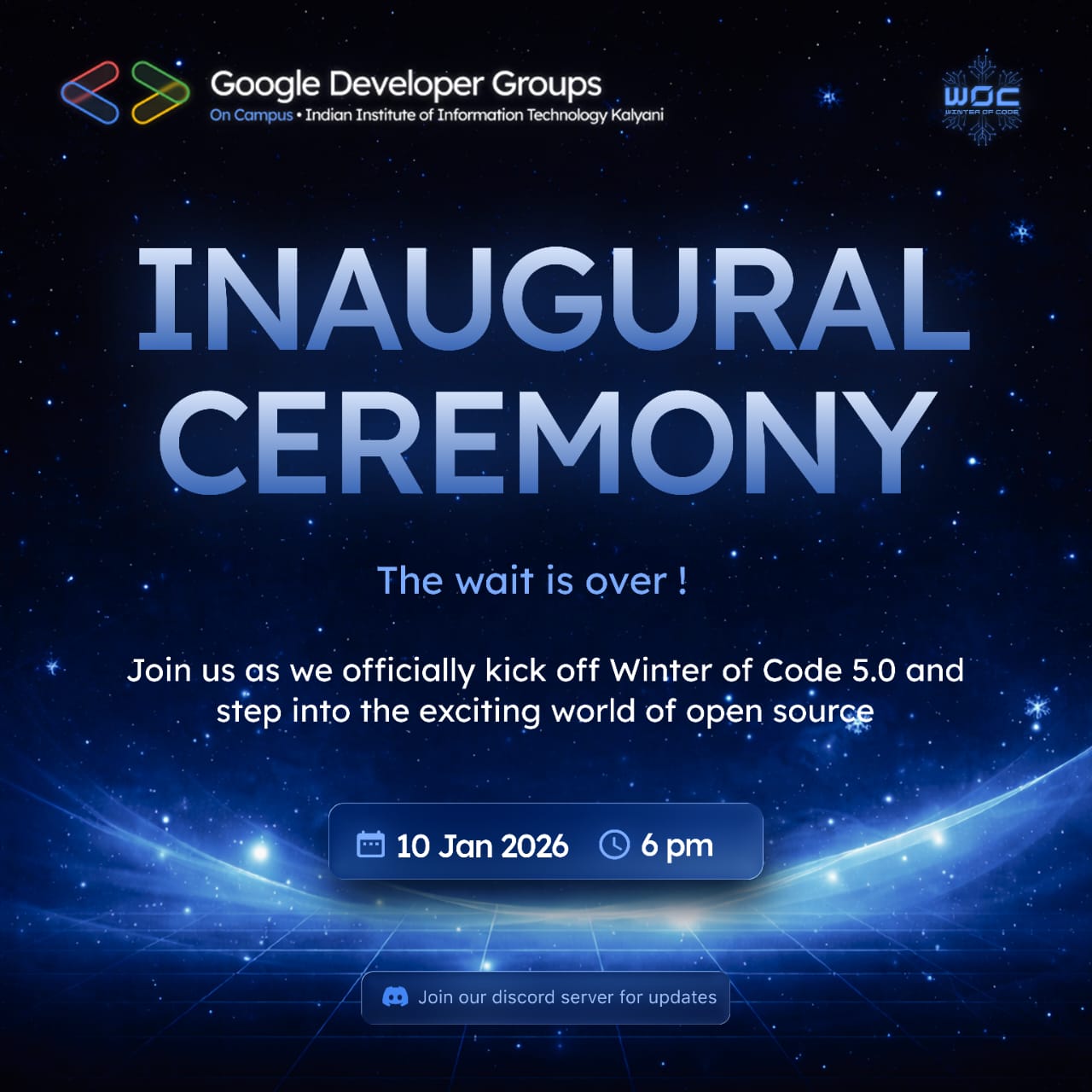 The official kickoff of Winter of Code 5.0 - welcoming contributors to a GSoC-inspired open-source journey.